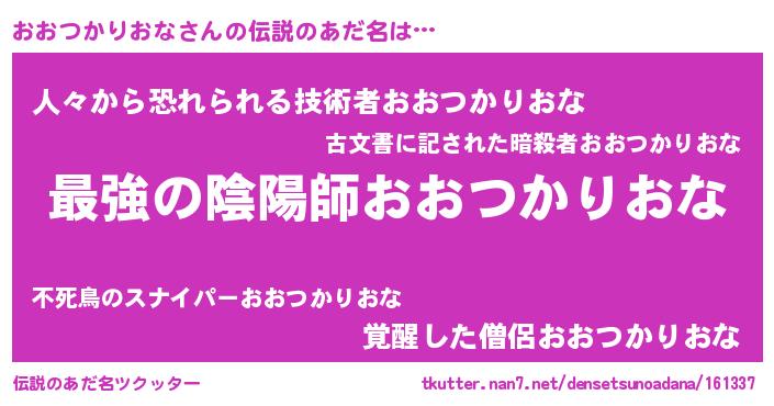 | 意味不明あだ名 | 『おおつかりおなフォーエバー』 |