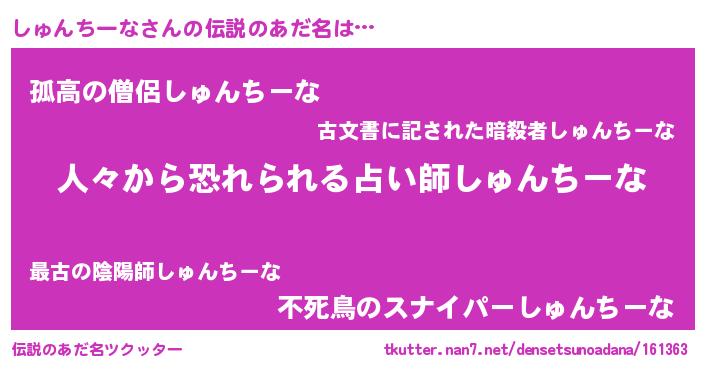 | ヒーロー風カッコイイあだ名 | 『友情の使者しゅんちーな』 |