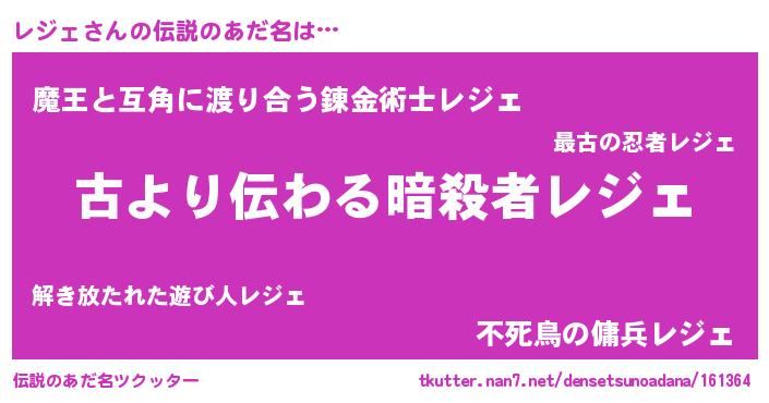 | ファンタジー風あだ名 | 『ゼレジトゥ』『レジディッシュ』 |
