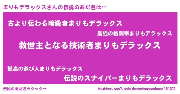 | ヒーロー風カッコイイあだ名 | 『天空の使者まりもデラックス』 |