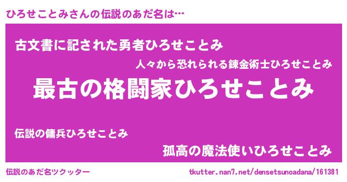 | 意味不明あだ名 | 『ひろせことみフォーエバー』 |