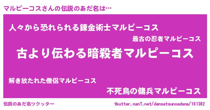 | 胡散臭い通販商品みたいなあだ名 | 『来世でも幸せになれる健康食品…その名も「マルピーコス」』 |