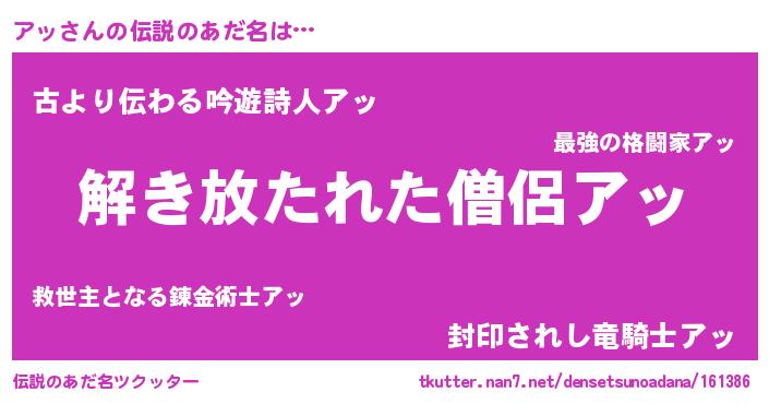 | 意味不明あだ名 | 『とにかく怪しいアッ』『永久保存アッ』 |