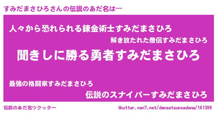 | 意味不明あだ名 | 『永久保存すみだまさひろ』 |