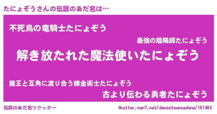 | 男性向けラノベタイトル風あだ名 | 『ダンジョンにたにょぞうを求めるのは間違っているだろうか』 |