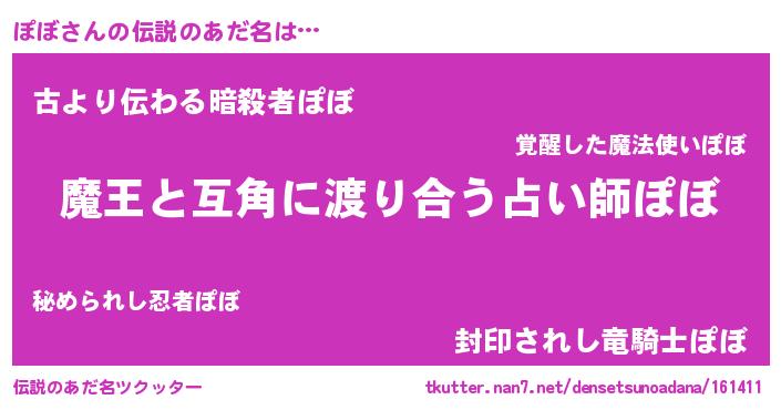 | 男性向けラノベタイトル風あだ名 | 『おまえをオタクにしてやるから、俺をぽぼにしてくれ! 』 |