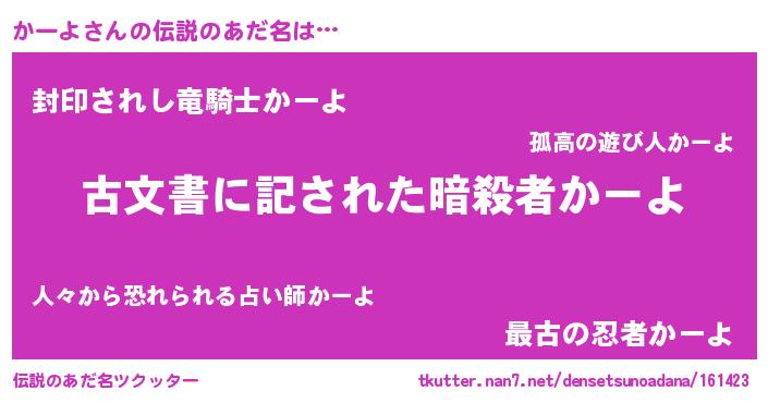 | 意味不明あだ名 | 『住所不定無職かーよ(40歳)』 |