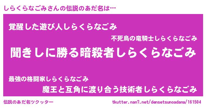 | 男性向けラノベタイトル風あだ名 | 『シラクラナゴミスレイヤー』 |