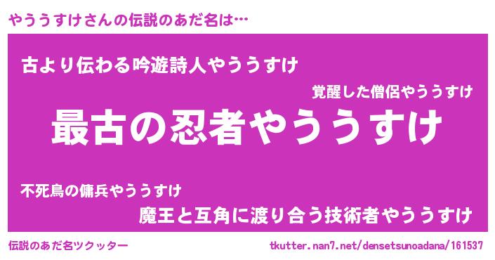 | 男性向けラノベタイトル風あだ名 | 『この素晴らしい世界にやううすけを!』 |
