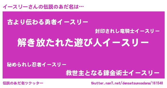 | 男性向けラノベタイトル風あだ名 | 『イースリーに滅ぼされるだけの簡単なお仕事です』 |