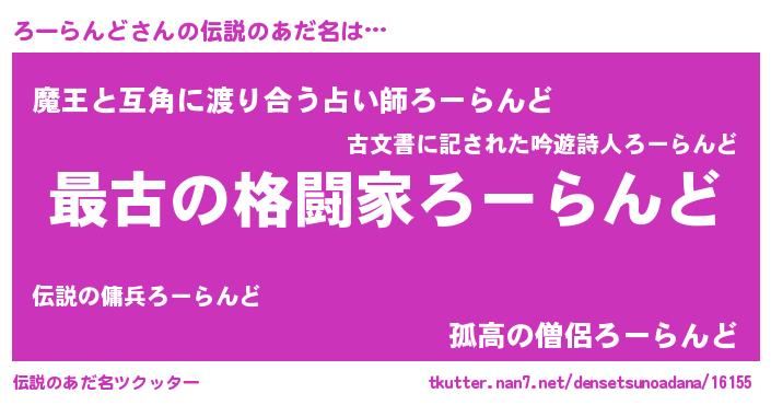 | ヒーロー風カッコイイあだ名 | 『最強戦士ローランド』『天弓騎士ロー』 |