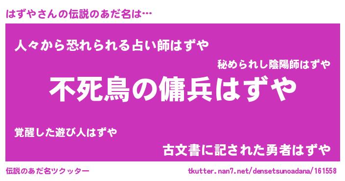 | 意味不明あだ名 | 『自称はずや』『ペロリンはずや』 |