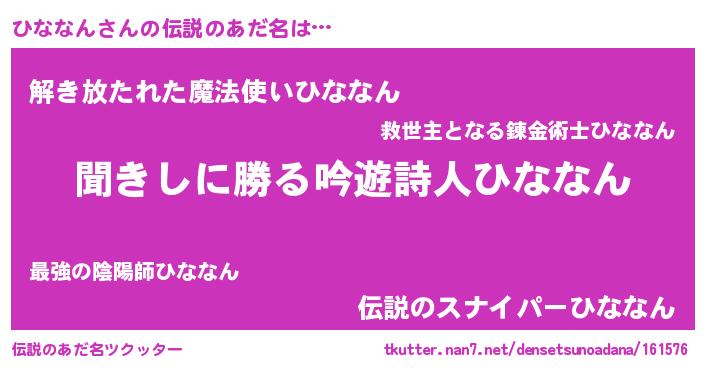 | ヒーロー風カッコイイあだ名 | 『ネオヒナナン』『仮面ヒナダー』 |
