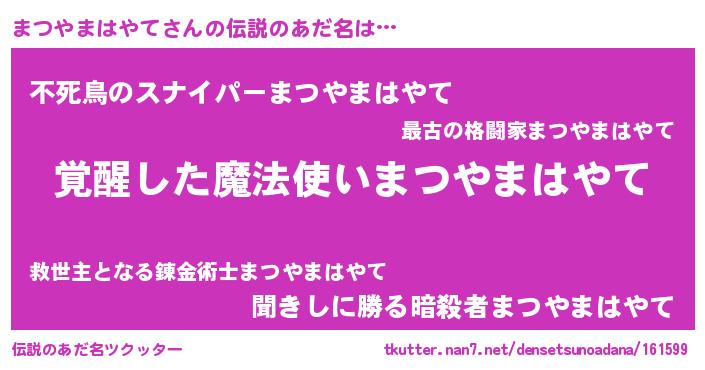 | 意味不明あだ名 | 『とにかく怪しいまつやまはやて』 |