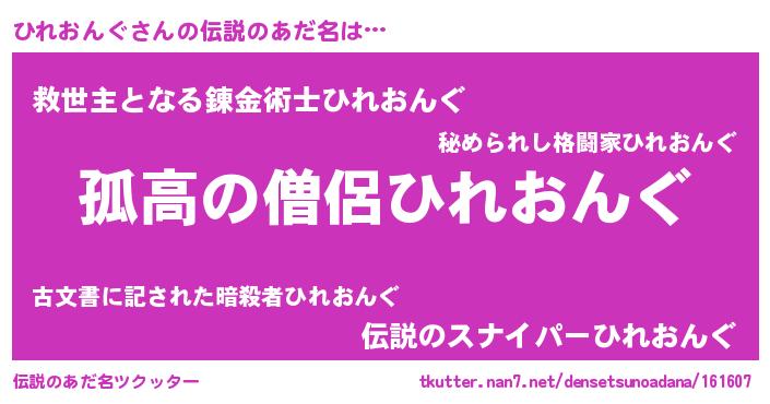 | 意味不明あだ名 | 『住所不定無職ひれおんぐ(40歳)』 |