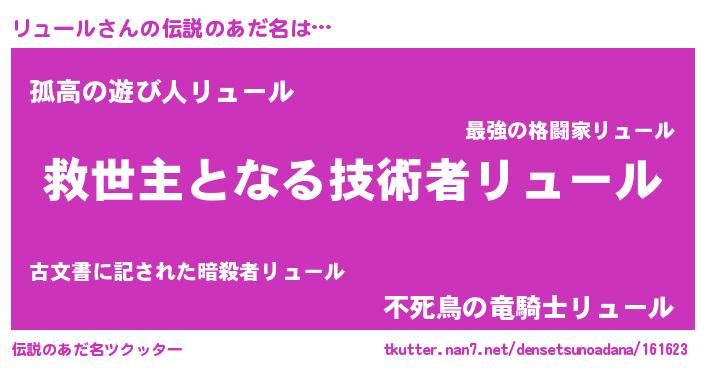 | ヒーロー風カッコイイあだ名 | 『仮面リュダー』『究極戦士リュール』 |