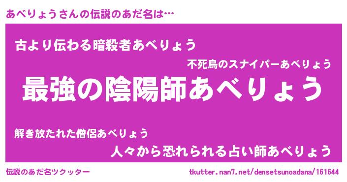 | 女子向けラノベタイトル風あだ名 | 『あべりょうの婚約者』 |