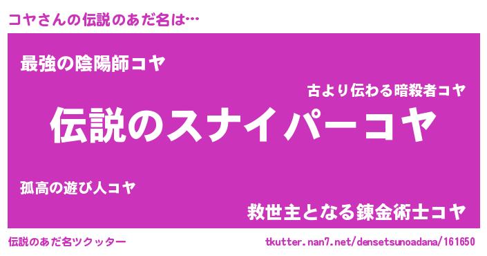 | 胡散臭い通販商品みたいなあだ名 | 『必ず成功する霊験あらたかなお札…その名も「コヤ」』 |