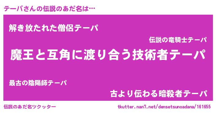 | 意味不明あだ名 | 『自称テーパ』『眠気覚ましガムテーパ味』 |