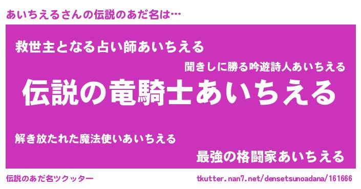 | 胡散臭い通販商品みたいなあだ名 | 『必ず成功するブレスレット…その名も「あいちえる」』 |