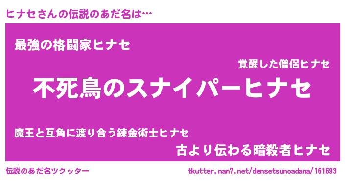 | 胡散臭い通販商品みたいなあだ名 | 『モテモテ間違いなし霊験あらたかなお札…その名も「ヒナセ」』 |