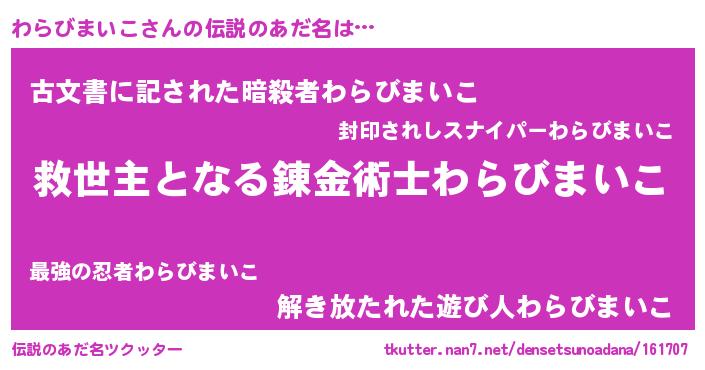 | ヒーロー風カッコイイあだ名 | 『天空の使者わらびまいこ』 |