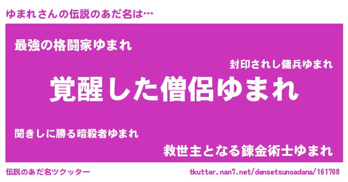 | 意味不明あだ名 | 『とにかく怪しいゆまれ』『自称ゆまれ』 |