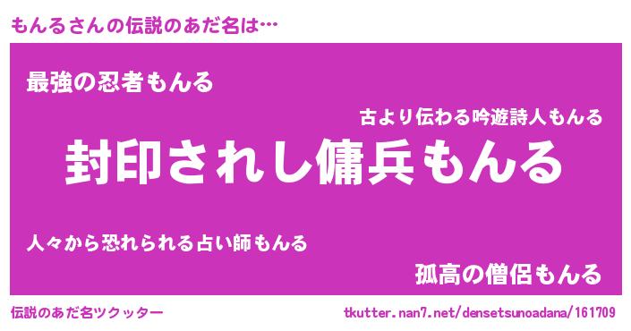 | ヒーロー風カッコイイあだ名 | 『スーパーモンル』『仮面モンダー』 |