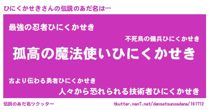 | 意味不明あだ名 | 『とにかく怪しいひにくかせき』 |