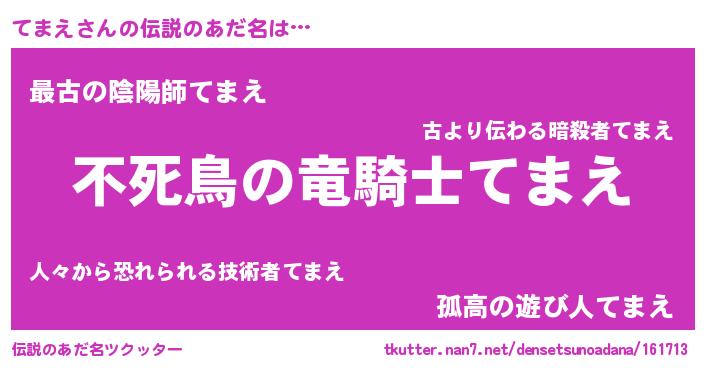 | ファンタジー風あだ名 | 『テマフェル』『エターナルテマエー』 |