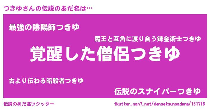 | ヒーロー風カッコイイあだ名 | 『幻影騎士ツキ』『ウルトラつきゆマン』 |