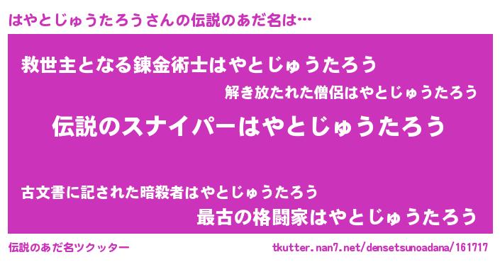 | 胡散臭い通販商品みたいなあだ名 | 『必ず成功する霊験あらたかなお札…その名も「はやとじゅうたろう」』 |