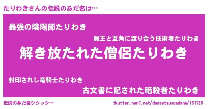 | 意味不明あだ名 | 『住所不定無職たりわき(40歳)』 |