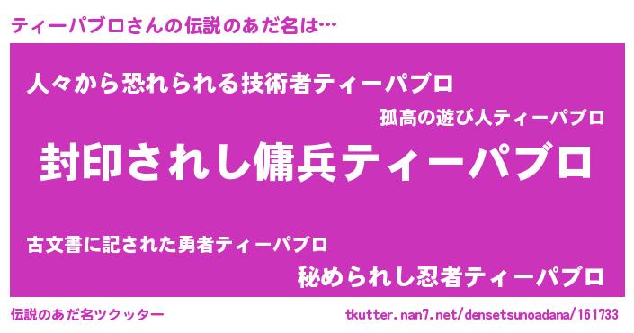 | 胡散臭い通販商品みたいなあだ名 | 『億万長者になれる水晶球…その名も「ティーパブロ」』 |