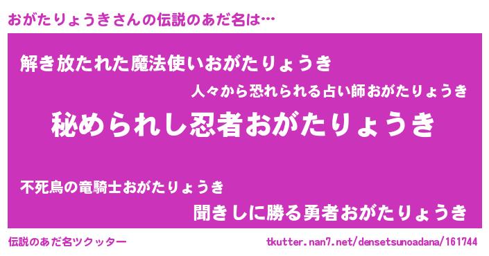 | 意味不明あだ名 | 『自称おがたりょうき』 |