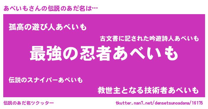 | 意味不明あだ名 | 『自称あべいも』『あべいもフォーエバー』 |