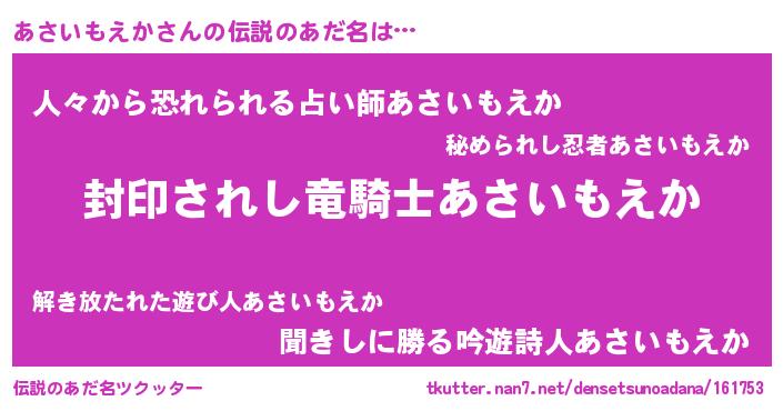| 欧米人風あだ名 | 『マイケルあさいもえか』 |