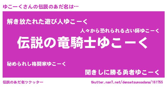 | ヒーロー風カッコイイあだ名 | 『スーパーユコーク』『仮面ユコダー』 |