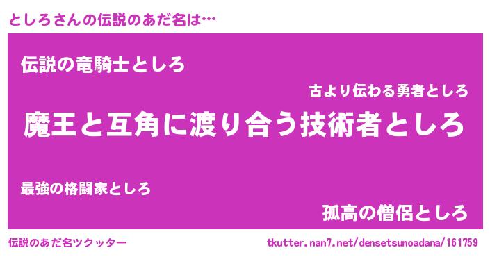 | 女子向けラノベタイトル風あだ名 | 『としろ恋絵巻』『横柄としろと宰相陛下』 |
