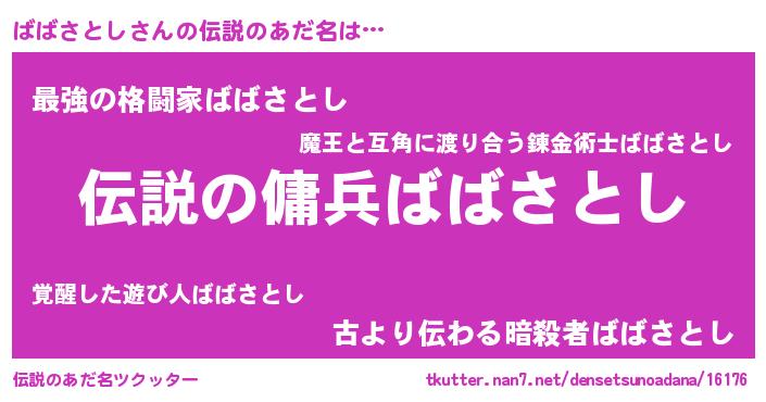 男性向けラノベタイトル風あだ名 | 『緋弾のババサトシ』 |