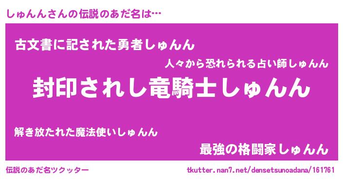 | 胡散臭い通販商品みたいなあだ名 | 『億万長者になれるブレスレット…その名も「しゅんん」』 |