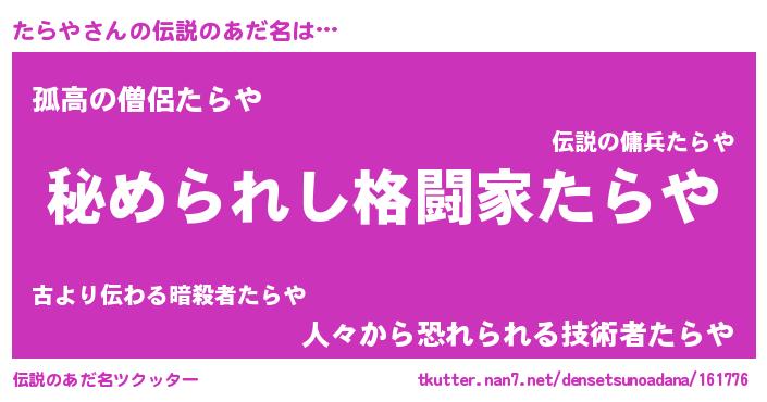 | ポケモン風あだ名 | 『タラヤダネ』『ターライ』 |
