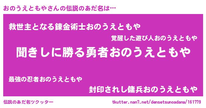 | 意味不明あだ名 | 『永久保存おのうえともや』 |