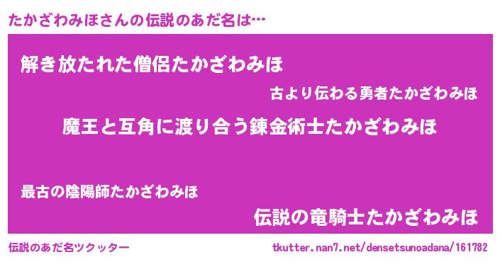 | ヒーロー風カッコイイあだ名 | 『仮面タカダー』『愛の使者たかざわみほ』 |