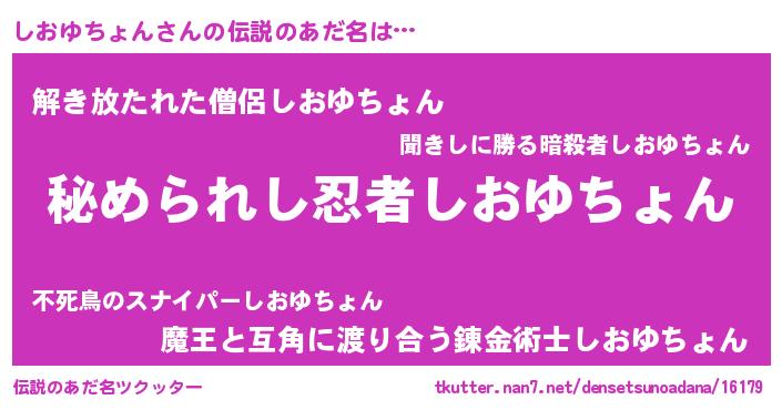 | 意味不明あだ名 | 『自称しおゆちょん』 |