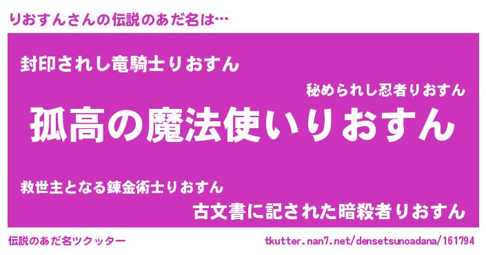 | 意味不明あだ名 | 『とにかく怪しいりおすん』 |