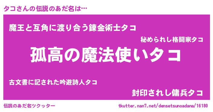 | ヒーロー風カッコイイあだ名 | 『黄金騎士タコ』『愛の使者タコ』 |