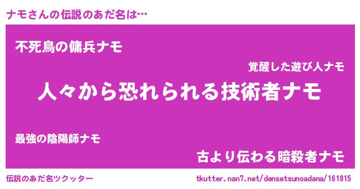 | ヒーロー風カッコイイあだ名 | 『正義の使者ナモ』『仮面ナモダー』 |