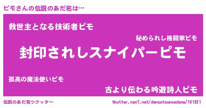 | ヘコむあだ名 | 『ピモっふぃ~』『ピモ(小並感)』 |