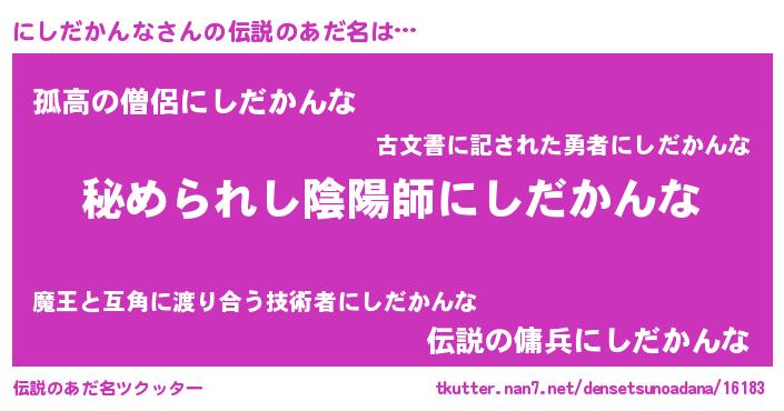 | 意味不明あだ名 | 『自称にしだかんな』 |